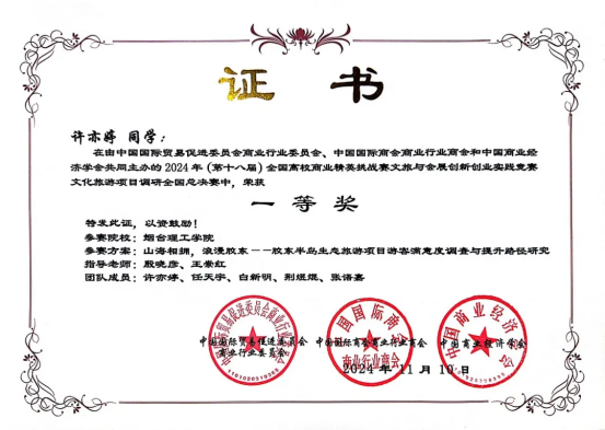 6.2025年8月获第十九届全国商业精英挑战赛文旅与会展实践赛旅游项目调研赛道山东省总决赛一等奖