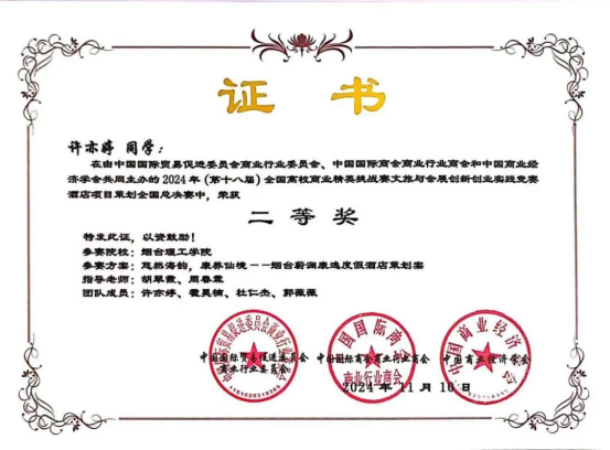 2.2024年11月第十八届全国商业精英挑战赛文旅与会展实践赛酒店项目策划赛道全国总决赛二等奖