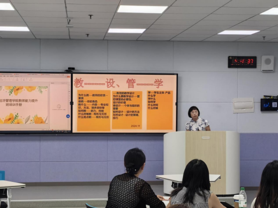 经济管理学院2025年教师教学能力提升班于8月29日至31日举行。本次培训以“赋能新教师、提升教学力、共建优质课”为目标,通过系统化、互动式课程安排,旨在助力我院教师队伍整体教学水平提升,帮助近三年入职新教师更快适应岗位要求、站稳讲台、形成风格。本次培训围绕以下四个核心主题展开:新教师如何站稳课堂?新教师教学适应性?教学是如何设计的?多种教学方法如何提升课堂效率?