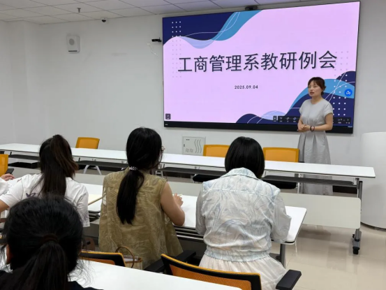 2025年9月4日,经济管理学院工商管理系在S209智慧教室召开新学期首次教研例会。会议由工商管理专业系主任李蕊老师主持,全系教师参会,围绕“教学大纲完善、教学资料归档、新生入学教育”三项重点任务展开深入研讨与部署。