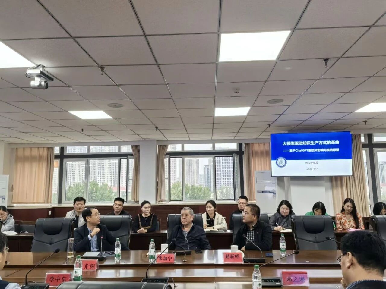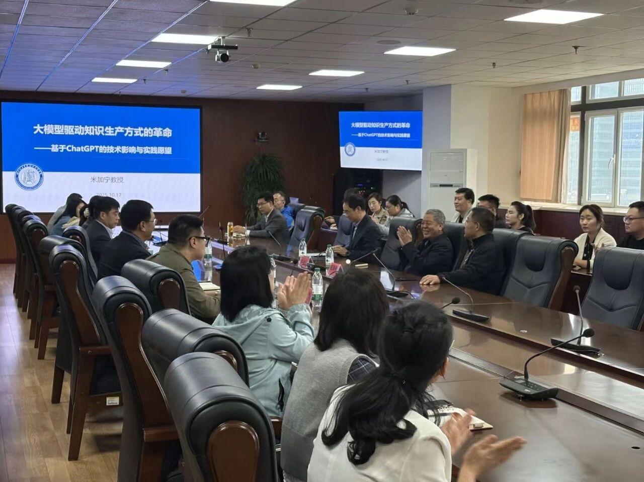 为进一步培育学院浓厚的学术创新氛围,提升教师对前沿科技的理解与应用能力,推动人工智能技术与教学科研的深度融合,近日,经济管理学院特邀哈尔滨工业大学管理学院米加宁教授作题为“大模型驱动知识生产方式的革命”的学术讲座。讲座由经济管理学院李院长主持,烟台理工学院校长于光辉莅临现场,学院特聘教授赵新峰及全体无课教师参加,现场学术氛围浓厚、思维碰撞热烈。