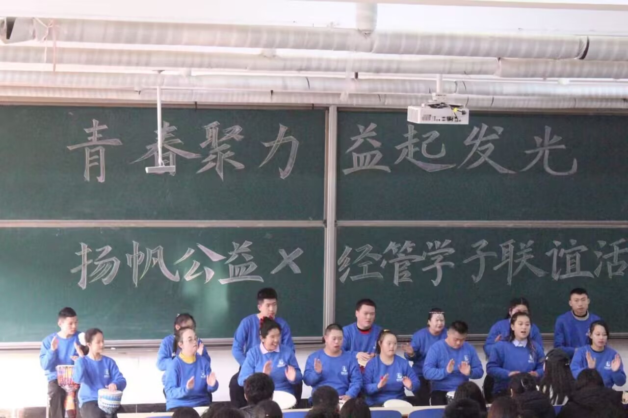 首先,活动以精彩的表演拉开序幕,扬帆公益残障人士合唱团与经管学子交替登台,用才艺诉说初心。残障伙伴们带来活力满满的《幸福拍手歌》、节奏明快的非洲鼓表演《上春山》,还有悠扬动人的萨克斯合奏,以及饱含深情的独唱《火红的萨日朗》与《希望你被这个世界爱着》,每一段演绎都是他们对抗困境、追逐美好的生动诠释。经管学子也将献上歌曲《下潜》与舞蹈《寄明月》,以青春风采回应这份热爱,让校企同心的暖意流转全场。