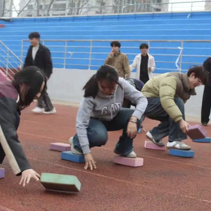 水瓶争夺战率先点燃赛场,选手们目光紧锁目标水瓶,灵活走位、快速冲刺,在协作与博弈中展开激烈角逐,现场欢呼声、加油声此起彼伏。“摸石过河”项目中,参赛者们脚踩“石头”稳步前行,每一步都考验着平衡感与专注力,有的选手从容不迫、稳稳当当,有的则因节奏失误引得全场爆笑,却依然笑着调整状态继续挑战,尽显青春活力。